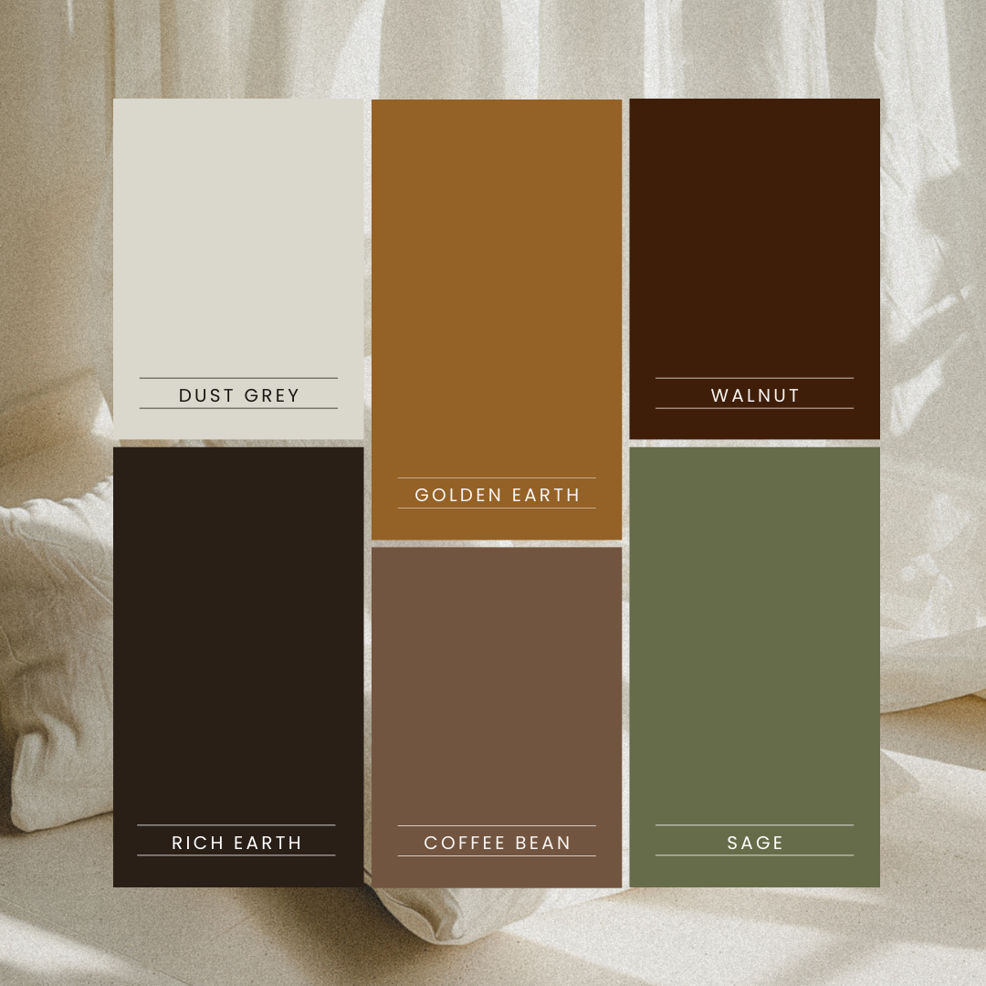 Traditionally associated with balance and subtle elegance, Dust Grey conveys timeless sophistication while promoting feelings of peace, stability, and spaciousness. Its soft, understated tone offers clarity and a mental exhale, creating space for reflection and reset. It allows the warmer, richer tones of the palette to shine without competing for attention.